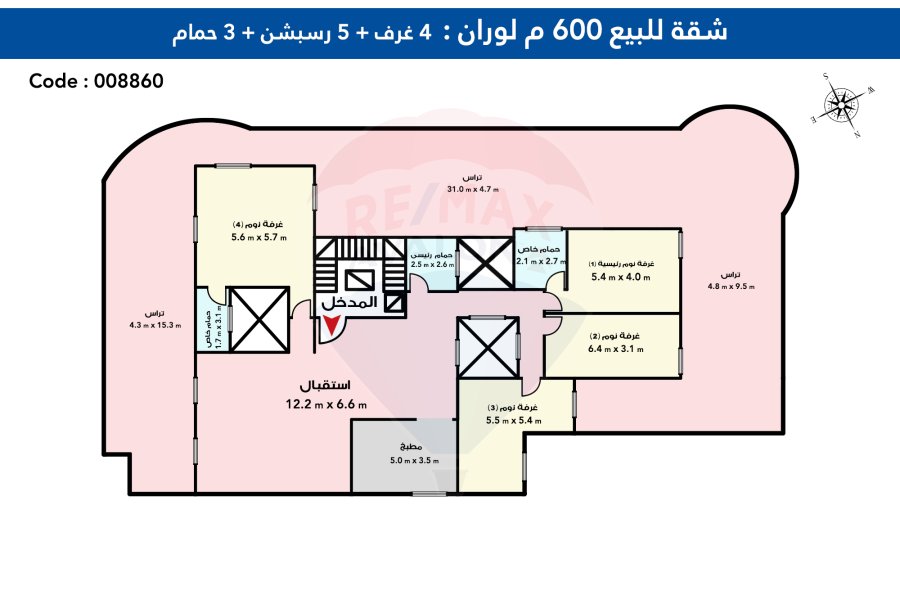 • 4 غرف نوم 5 ريسبشن 3حمام