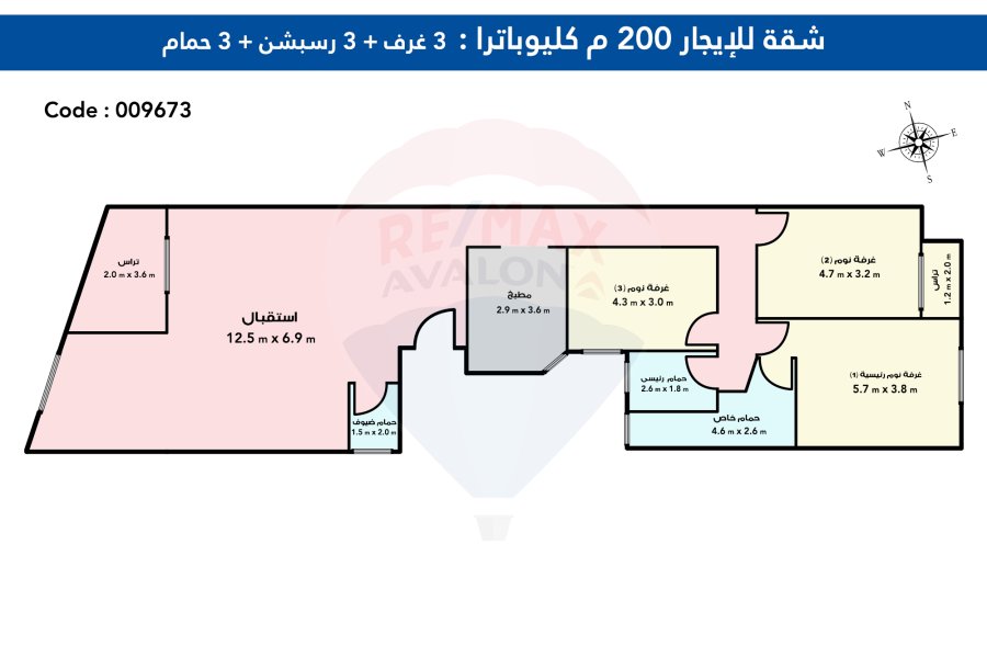 • 3 غرف نوم 4ريسيشن 2 حمام.