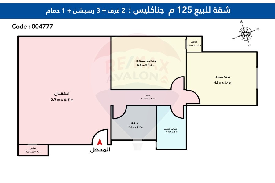 • 2 غرف نوم 3 ريسبشن 1 حمام.