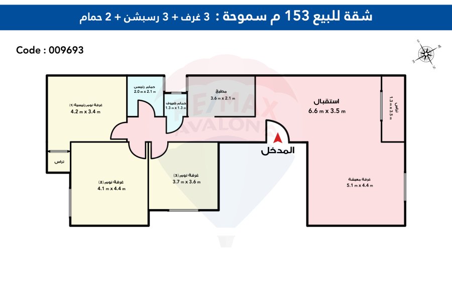 • 3 غرف نوم 3 ريسبشن 2 حمام .