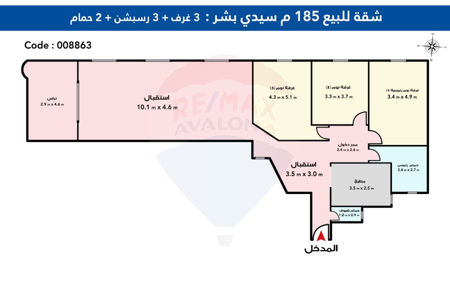 شقة للبيع 185 م سيدي بشر ( علي البحر مباشرة) - 3,400,000 ج كاش - الوكيل / محمد سليمان 01000217589