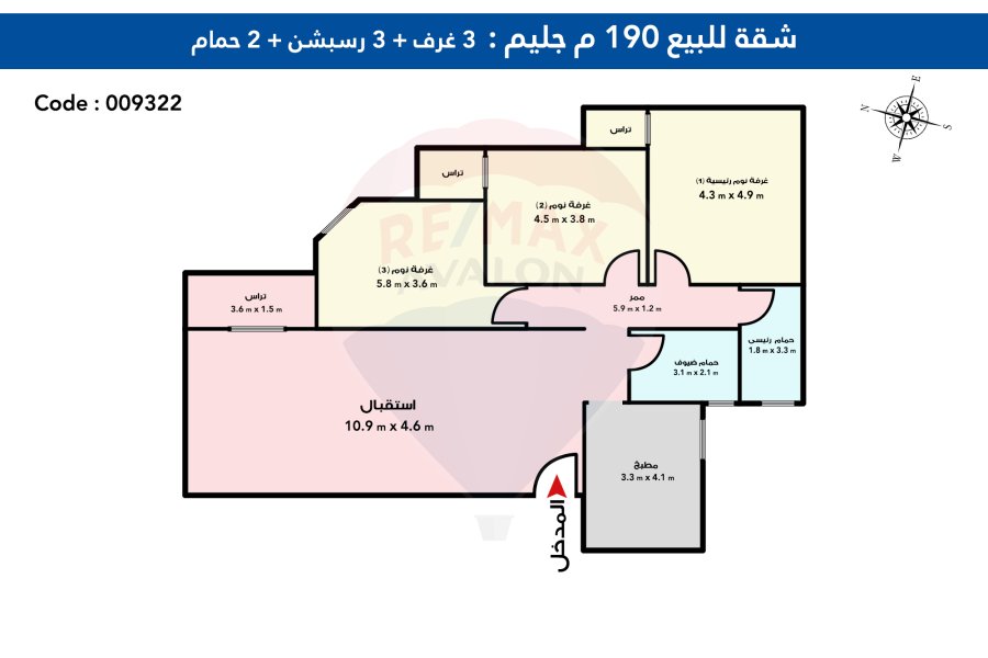 • 3 غرف نوم 3 ريسبشن 2 حمام