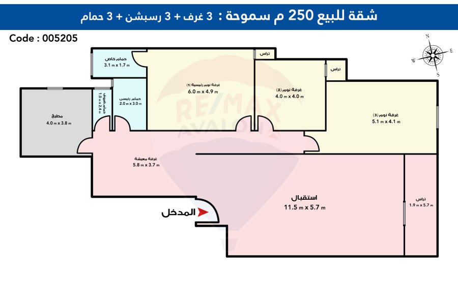 • 3 غرف نوم 3 ريسبشن 3حمام