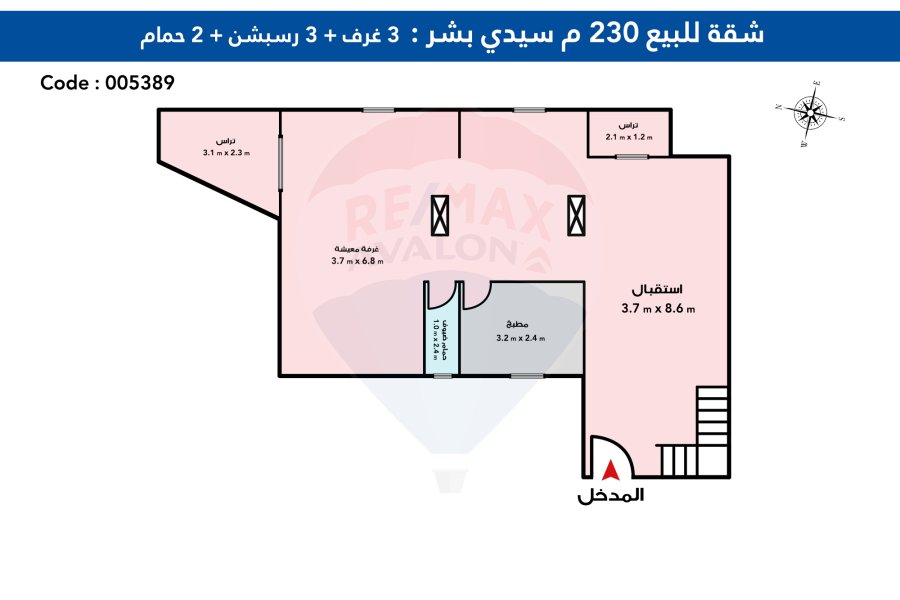 • 3 غرف نوم 3 ريسيبشن 2 حمام .