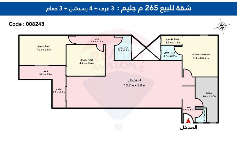 • 3 غرف نوم 4 ريسبشن 3 حمام