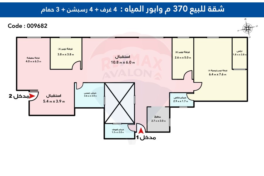• 4 غرفه نوم 4 ريسبشن 3 حمام .