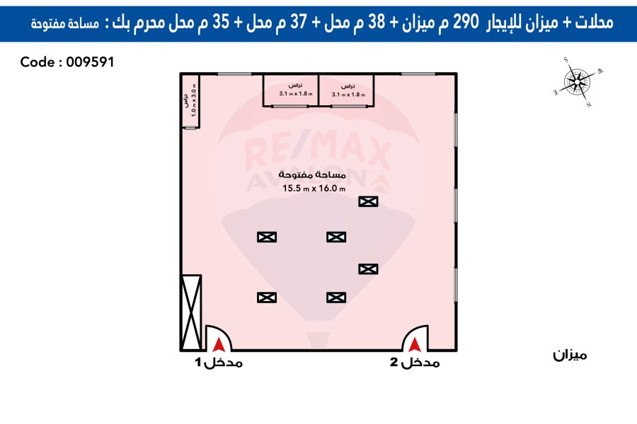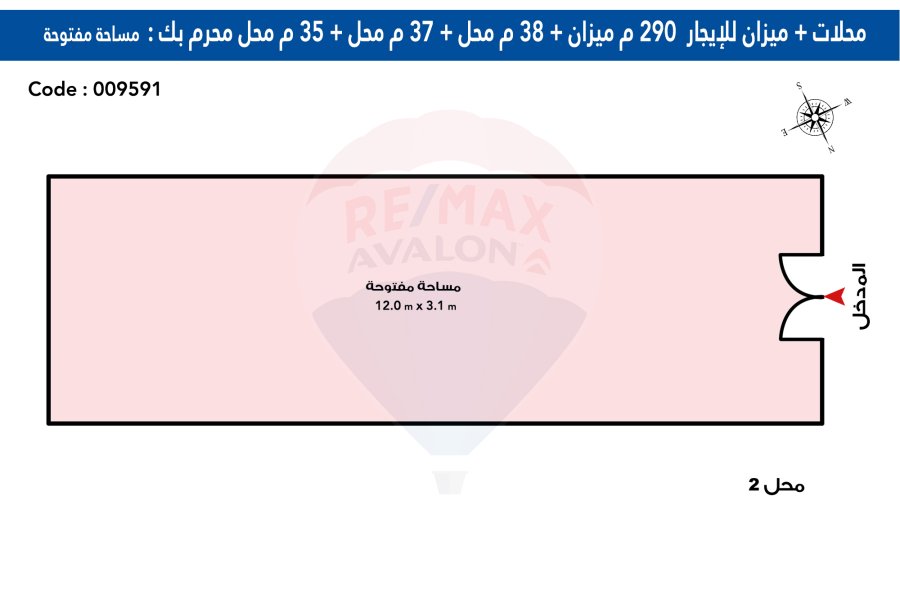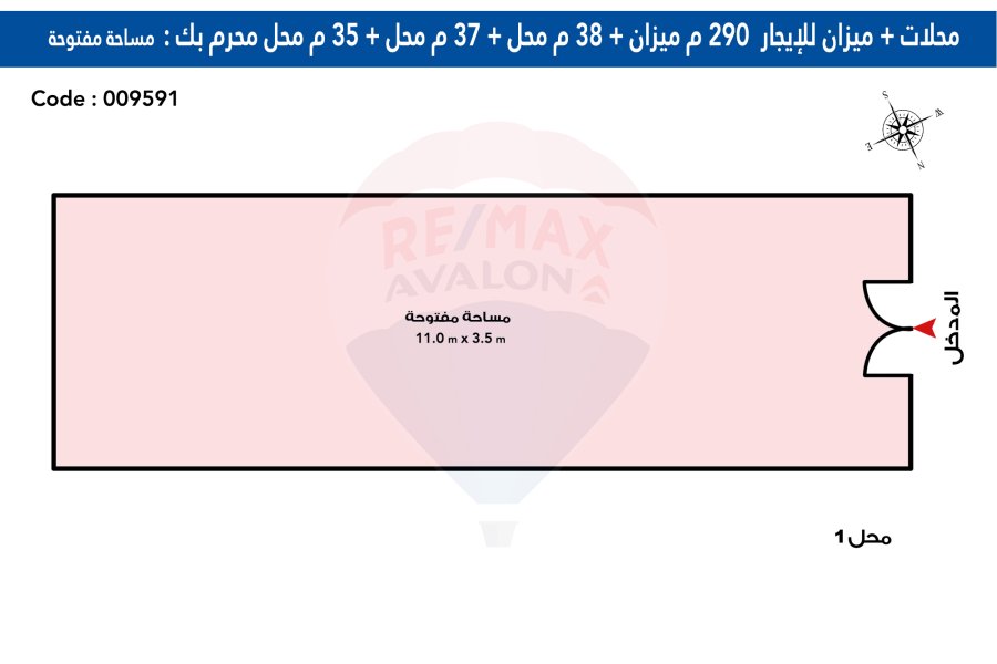 • الدور الأرضي محل 110 م (ثلاث ابواب)